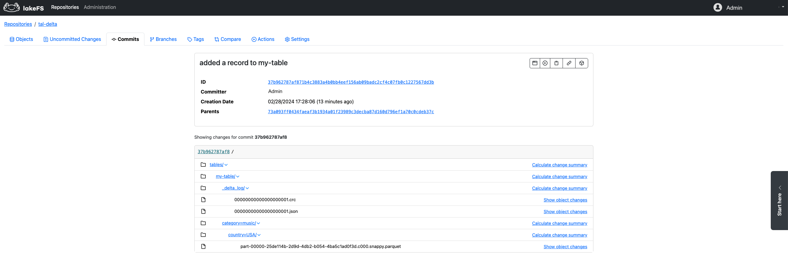 Consequently, when making changes to a Delta table within the lakeFS environment, these changes are reflected as changes